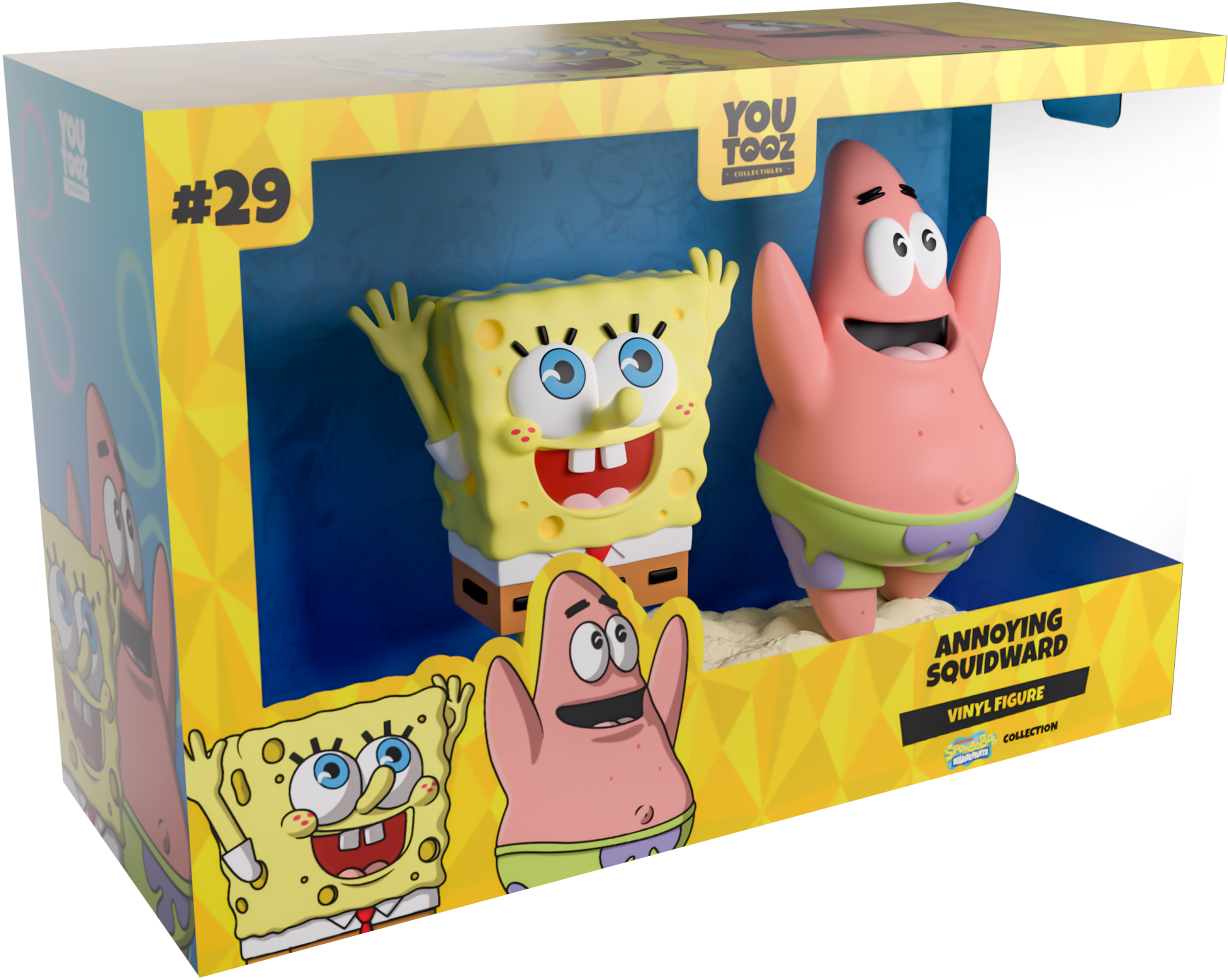 בובספוג ופטריק חוזרים עם מארז כפול חדש, הפעם על חשבון סקווידוויד! כמה הקפות סביב הבית של סקווידוויד אתם חושבים שיצטרכו כדי שהוא יצא ויצטרף אליהם? דמות בגובה כ-15 ס"מ מציגה שני חברים הכי טובים עם חיוכים ענקיים על פניהם המאושרים, כשהם רצים זה לצד זה על החול עם ידיים מורמות וללא דאגה בעולם התת-ימי. החלק החיצוני של האריזה מציג את סקווידוויד מציץ מבעד לוילונות של חלון חדר השינה שלו בזמן שבובספוג ופטריק משתעשעים בחוץ, ואילו החלק הפנימי הוא מעבר צבע (גרדיאנט) כחול-אוקיינוס שעליו קולאז' של איורים של בובספוג.